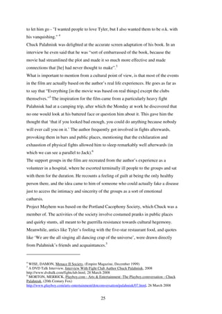 Fight Club questions our. The passage also contrasts two different marks. Tyler begins what he calls Project Mayhem in which he recruits members of Fight Club to act as his own personal guerilla force in a campaign of social terrorism.
